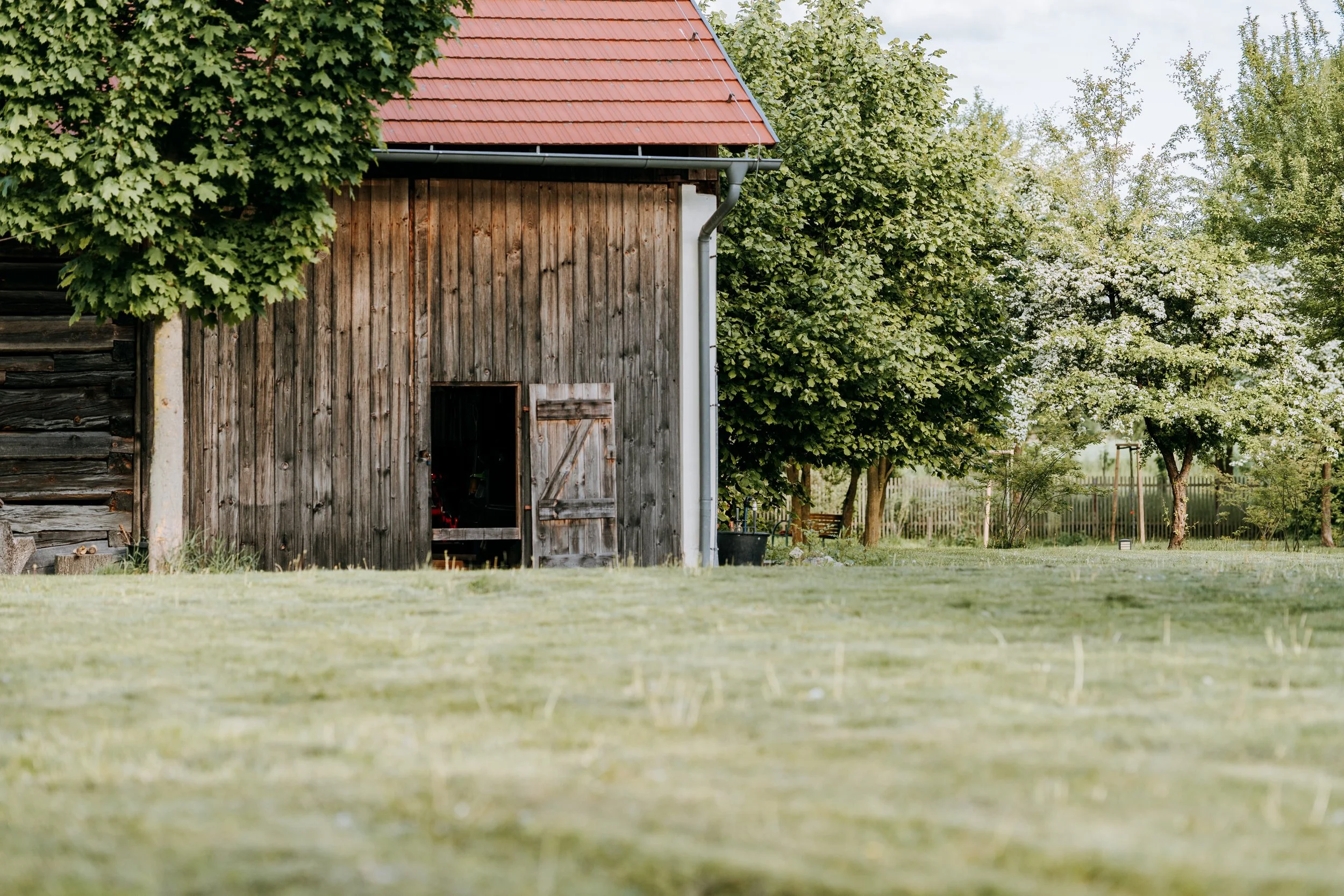 Obřad se může odehrát pod větvemi stromů, kde světlo mezi listy kreslí na zem jemné stíny. Nebo před stodolou, jejíž dřevěné trámy vytvoří přirozenou kulisu pro sliby, které mají vydržet celý život. A když se večer začne snášet soumrak, prostor před stodolou se může proměnit v taneční parket pod širým nebem, kde hudba zní jen do chvíle, kdy se krajina uloží ke spánku.